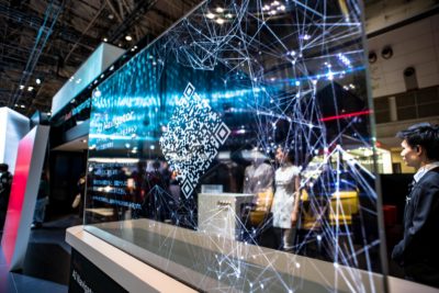 Audiブースで見かけて気になったのがこれ。失礼ながら展示車両はほとんど見ていないのですがこのディスプレイに興味を魅かれました。透過型の液晶ディスプレイというのは世の中に数あれど、透明な上に表示されたオブジェクトが自発光するってなかなか無いですよね。しかもフルカラーですか。