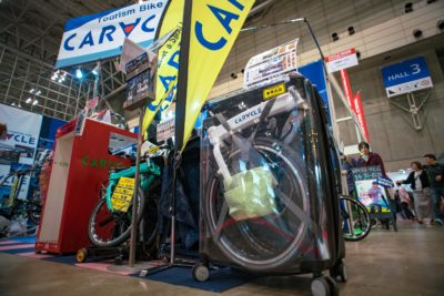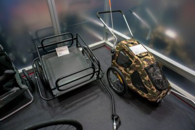 今回のイベントでもこうした商品を取り扱っていたのはこのブースくらいのものでしたが肝心な説明員の人が見当たらず放置状態。出来ればこういうのを引っ張りながらの試乗とかも出来ると良いんですけどね。引っ張るだけでも案外重たくて実用性は現実的ではない!なんて感想を持つかもしれませんし、逆に転がるだけなので重さを感じずすごく便利!とか。ペットとか一緒に乗せて走れたら楽しいかもしれませんね。