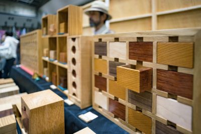 今回は多くのブースで寄せ木を使った作品作りを目にする事が出来ました。最近寄せ木って流行っているんでしょうかね? ただしこういった場ですから寄せ木は寄せ木でもそこいら辺で見かけるものとはちょっと違う。各ブース色々な工夫が見て取れました。