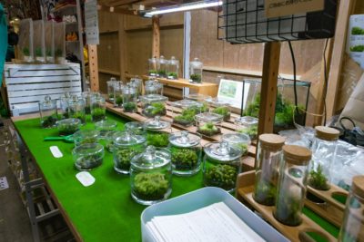 今年から苔にも手を出し始めた私、毎度の事ながらこのイベントでは苔テラリウムを展示するブースがいくつか出展しています。”道草” さんのブースはもうすっかりおなじみですし、大手のボタニカルショップなどにもキットが売られていたりしますから有名ですね。