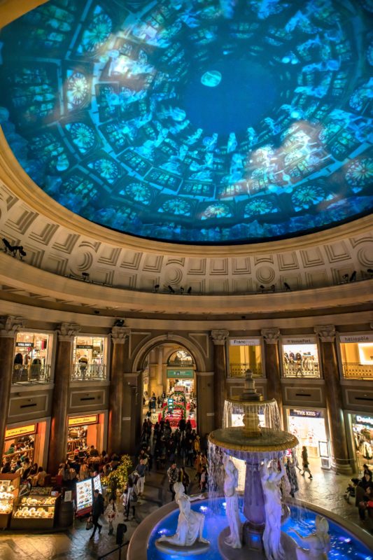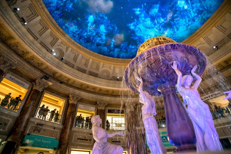 ここVenusFortは普段から天井に青空が映し出されていたりするので、青っぽい映像を映しても変化に乏しかったのかも知れませんね。いっその事赤とかピンクとかもっと派手なCGであれば暗くても存在感が出たように思います。