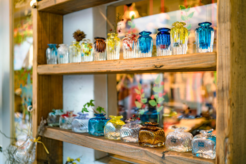 手吹きガラスは機械形成に比べるとあらゆる面で精度が低く、比較的厚みがあるため気泡の混入なども避けられませんし透明度にもムラが出ますが、それも含めて手作り感から受ける個性豊かな形状に最大の魅力があります。沖縄の琉球ガラスなどもこれに属すると思います。機械形成に比べると素材そのものの硬度が低く傷がつきやすいという弱点はありますけど。