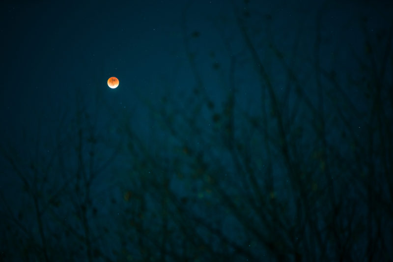 皆既月食の終了時刻、僅かに明るさを取り戻すタイミングで撮ることにしました。もう少し待って三日月ぐらいの所を収めたほうがそれっぽいかもしれませんが、これ以上明るくなると古いレンズなのでフレアが激しく発生してしまい雨の中で撮ったみたいになってしまうのです。オールドレンズの性ですね。こんな時ばかりは最新設計のレンズが欲しくなります。私のサンタさんはまだ来てくれないのでしょうか...。