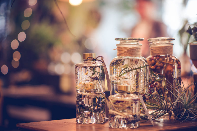 しかしSolsoのハーバリウムはプリザーブドフラワーではなくナチュラルカラーのドライフラワーだけで微妙な色を表現。ハーバリウムにありがちな ”詰め込みすぎ” はシリコンオイルの中でドライフラワーが浮いてきてしまう事への策ですが、Solsoのものは適量の素材で見栄えのするレイアウトになるよう組み合わせる素材を工夫し密になりすぎないアレンジで浮遊感を出しています。これは小さいビンより大きなビン程気を使う部分であり結果に表れやすいと思います。こういうセンスというのは誰かに教えてもらうとか何かの法則だとかそういう事ではなく、上手い人が絵を描くみたいに作った人の個性がそのまま形になっている気がするんですよね。Solsoはボタニカルアレンジ全般において特別上手いと思います。