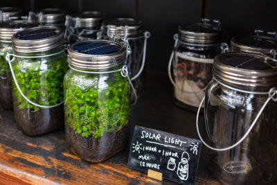 物欲には繋がりませんでしたが、コーヒーボトルくらいのガラス容器の蓋にソーラーライトを組み込んだアイデア商品もありました。見た瞬間はLEDライト育成キットかと思ったんですが、考えてみたらソーラーライトを充電するためには日向に置くわけで、ということはやっぱり育成自体は日向で行い、夜の観賞用ライトとしてLEDで照らすという事なんでしょうね。Max 2Hoursと書かれていましたからバッテリーライフはちょっと短めですかね。