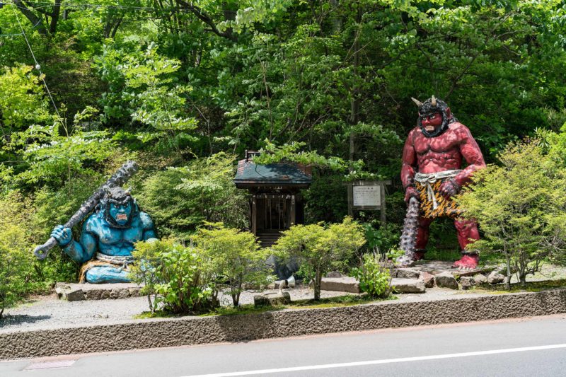 地獄谷に続く急な坂道の途中にも鬼。車の運転中につき写真には撮れませんでしたが高速道路の最寄インターの前には高さ10メートル以上はありそうな巨大な鬼が立っていました。どれももう少し可愛い感じなら愛着も沸きそうですが、なんともリアルな作り物なんですよね...。