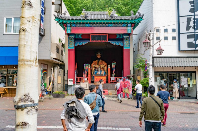 そして登別温泉のメインストリートである極楽通り商店街には閻魔堂なる建物があり、こちらには鬼ではなく閻魔様が鎮座しています。この感じはなんだか中国を思い出させるような色使いとキャラクターですね。後になって知ったことですが、1日に数回「地獄の審判」の時間になると顔が真っ赤になり怒った表情に変わる閻魔様が見られるらしいです。そのうちの1回が15時だったのですが私が訪れたのが15時10分ですでに終了しておりました。