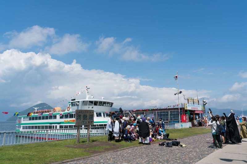 どうやらこの日は ”漫画アニメオフ会” みたいなイベントがここで開催されているらしく、湖の畔がコスプレーヤーの人達でごった返しておりました。駐車場は船着き場から一番近くても1km以上離れた小学校のグラウンドだとか。