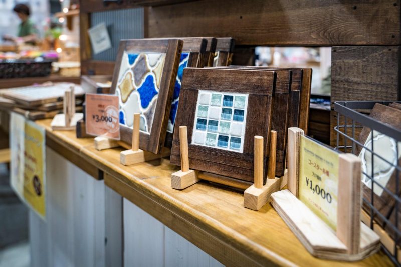 普段は気にしないタイルアートも今回はすこし「おっと」思うようなものが出品されていました。アンティーク調の木枠のセンターにタイルがはめ込まれたコースター。まあ私の場合はコースターというよりこの上にテラリウムなどを載せるための敷物に使う目的ですが、サイズ感といいお値段といい申し分のない出物でした。