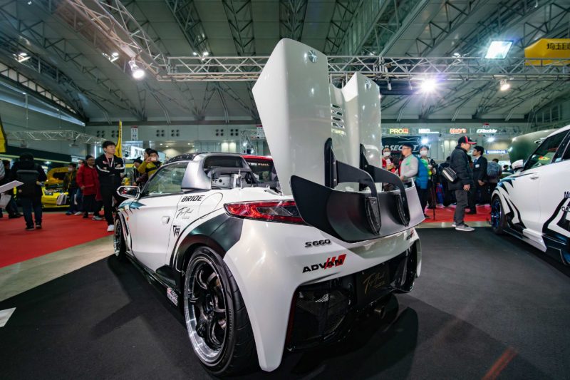 場内にはS660のデモカーも結構見かけましたからこういう趣味性の高い車への注目の高さが伺えます。これが東京モータショーだったら大手メーカー出展のノーマルカーが並ぶだけですからディーラーショールームに行くのとあまり変わりませんが、こんなふうに見栄えからして違う車が並んでいると実にワクワクします。