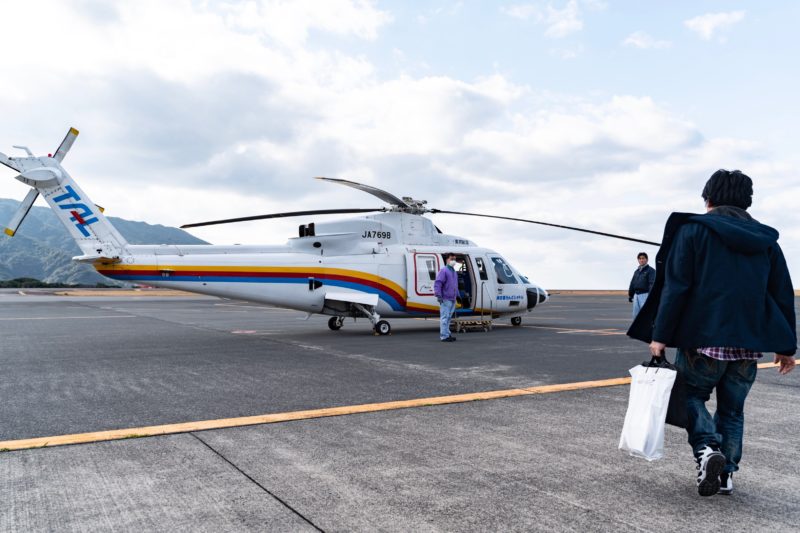平日だというのに朝は始発電車に乗って7時半の飛行機でまずは八丈島へ。そこからヘリコプターに乗り換えていざ青ヶ島へ!