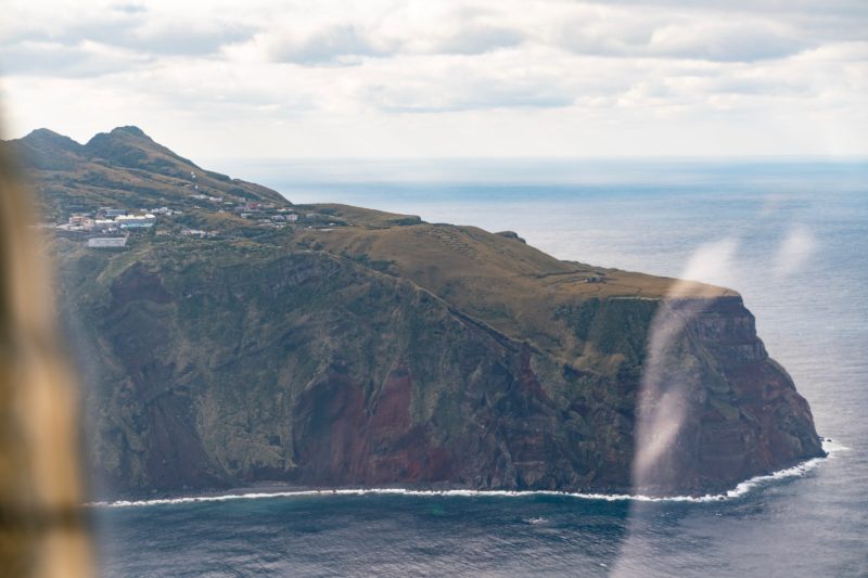 八丈島からは20分程のフライト。ローターやエンジンの音以上に、ドアのヒンジの遊びがガタガタうるさかったのには参りましたが、それも空を飛んでいるという実感にはプラスに働きました。