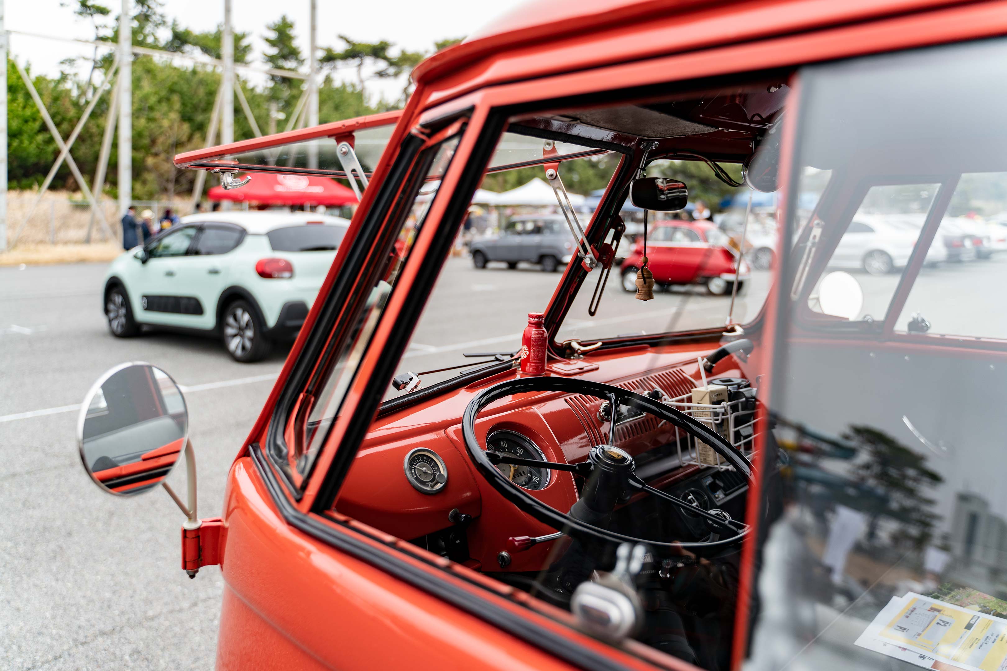 極め付きはこの跳ね上げ式フロントガラス、カッコいいですね。このコンニチワ感がタマラナイ! よくよく考えるとフロントガラスっていつ開けるんだ?っていう疑問はありますが...。走行中は開けるはずないので停車時ですよね? だとするとやはり停車中も車内に長時間いる用途を想定するわけで、自ずと一番似合うのはキャン...。
