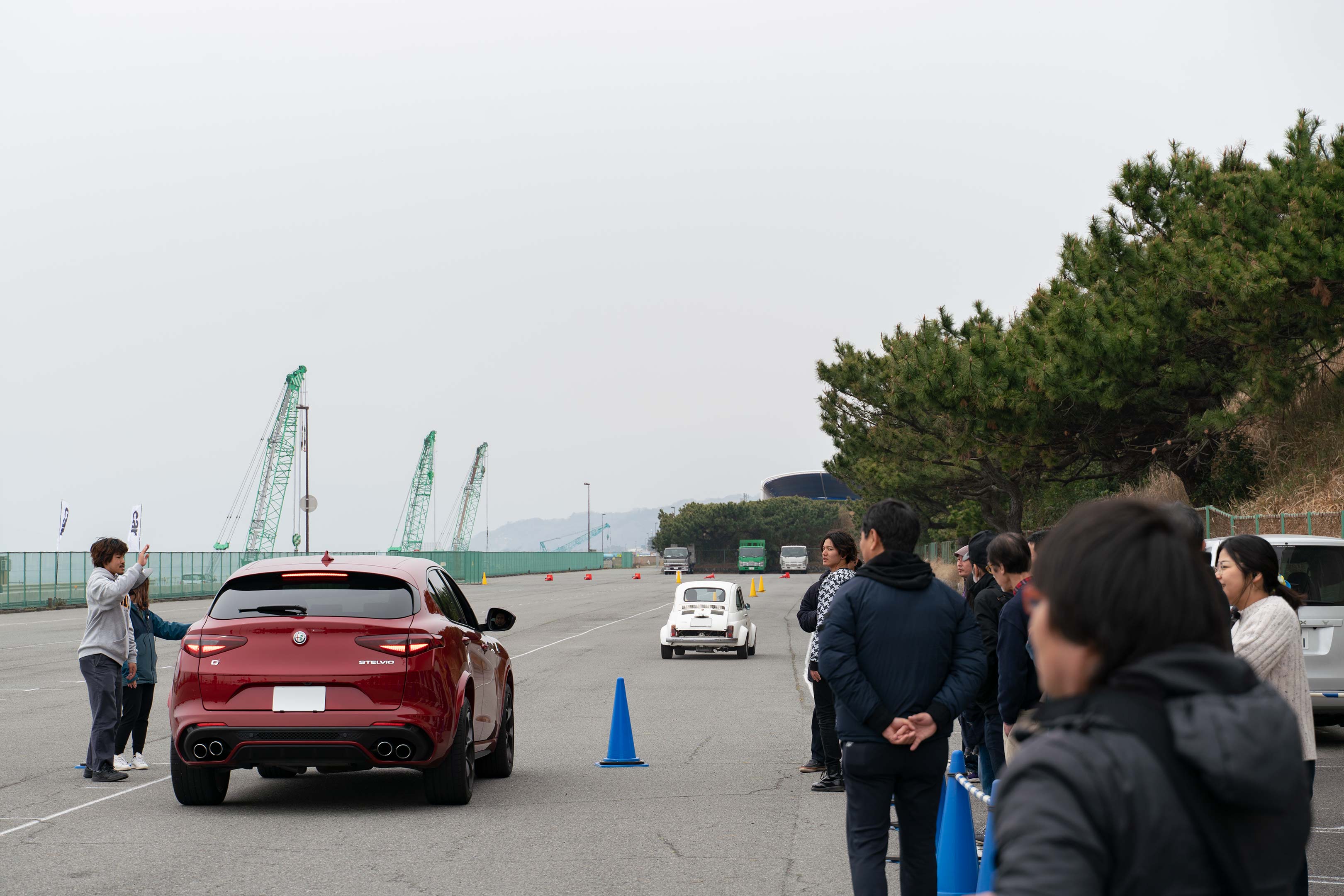 試乗車の中にはFIAT500チンクエチェントもエントリーされていたので是非乗ってみたかったんですけど、なにせそんなシステムなので希望したからといってその車種に乗れる確率は極めて低く...。諦めました。ちなみにチンクはスラロームを無視して直線で突っ走りUターンしてくる、車を労った走りをしていました。