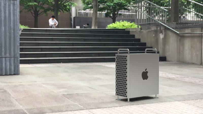 こんなところに雑に置いていますが、これはAppleさんのAR技術で好きな場所に新型Mac Proを置いて写真が撮れるサービスを使っただけですから実際に購入したものではございません。まだ売ってませんしね。
