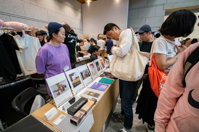 このエリアは本というよりは雑貨に近いものまでが自由に並んでいるので一見するとデザインフェスタ風な雰囲気が感じられます。缶バッジとかトレイみたいなものとかTシャツとか、メディアは何にせよそこにオリジナルのプリントがなされており、アートと謳えるものであれば基本的に出店が許されているのでしょうね。