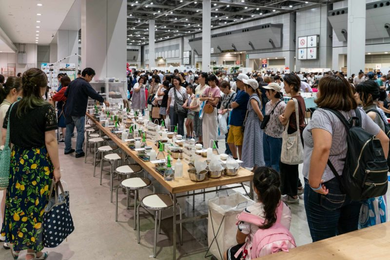 到着するなり最初に目に飛び込んできたのがこちらのワークショップエリア。このイベントは展示販売だけでなく体験型のエリアが設けられており参加費を払えば誰でも手作り体験が出来ます。近年はハーバリウムやキャンドル作りが定番でしょうかね。今回は苔テラリウムコーナーがすごい人気でした。上の写真にもあるように作成キットが並べられたテーブルの前には大勢の人が順番待ち...。