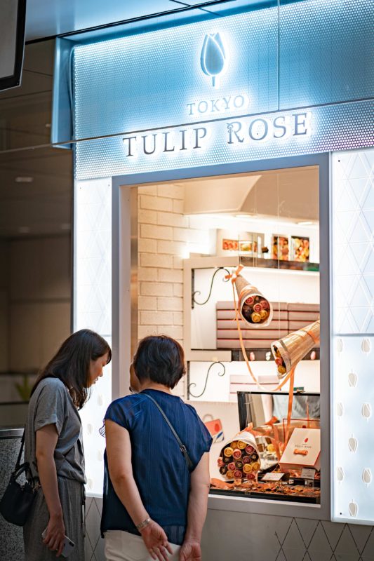 しかしこちらのチューリップローズはそういう爆発的ヒットを狙ったショップではなく、海外で技術を学んだパティシエさんが日本で立ち上げた新しいブランドらしく、池袋に続いてここ東京駅が国内2店舗目のオープンだそうで。手土産に丁度いい感じのお菓子で出来た花っていうコンセプト。
