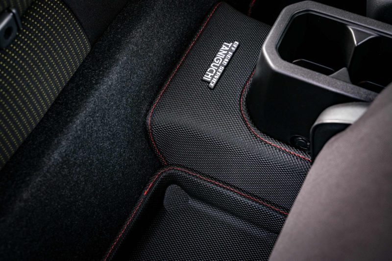 リアシートを起こさないのであれば1枚物のマットが最適、座席としても使いたい場合は7点分割タイプのマットが重宝しそうという事で、今回チョイスしたのはFJ CRAFT製の分割タイプ。マットの色やステッチの色も選べますが純正っぽくオーソドックスな黒一色で。