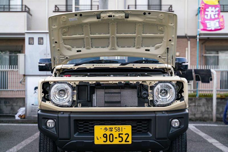 ジムニーは実用一点張りのクロカン4駆という位置付けなので、エクステリアの見える所だけでもかなり樹脂パーツが使われています。傷ついたり壊れたりしても目立たないよう始めから塗装がされていないのです。バリバリに割れてしまって新品交換する際にもパーツを低価格に抑える目的もあろうかと思います。商用車に近い一般乗用車といったところですね。