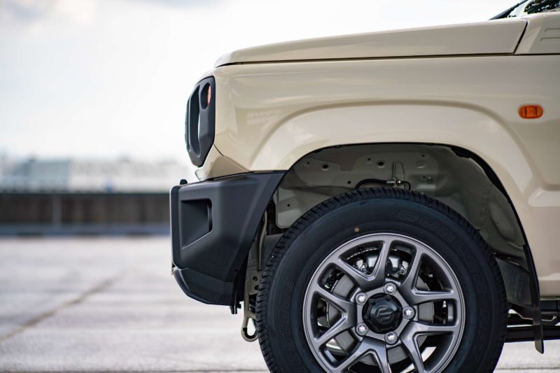 まだダートは殆ど走っておらず走行の中心は舗装路メイン。しかも慣らし期間中という事もあり急が付く運転は皆無という前提で言うなら、ジムニーの足はしなやかだけれどショックの減衰力が低すぎてスプリングに負けているという印象です。