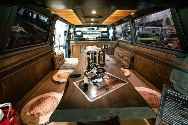 またこの車が日本車ではなく古いVWというところがまたカッコいいのでしょうね。もちろんハイエースとかで作ることもできるのでしょうが、やはりこれだけかっこいい内装にはそれに似合う車両選びというのも大事だと思います。