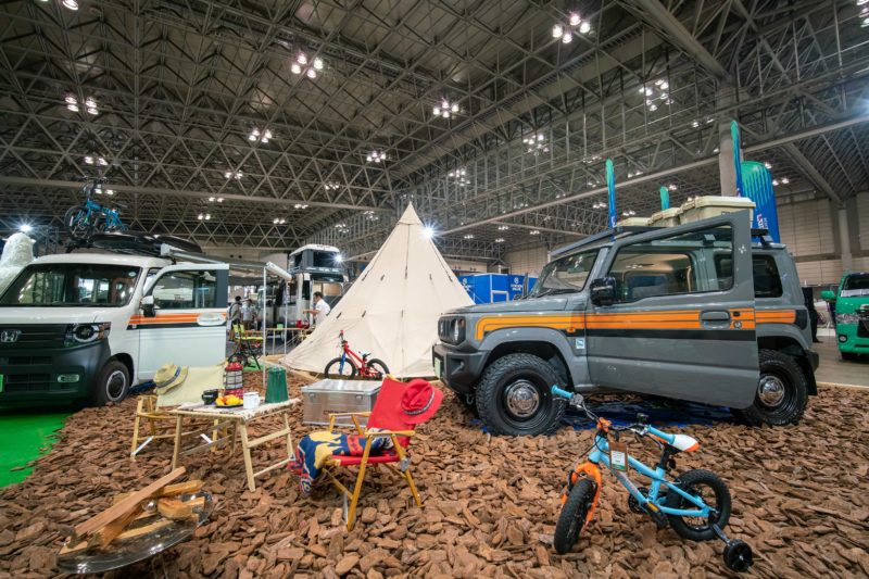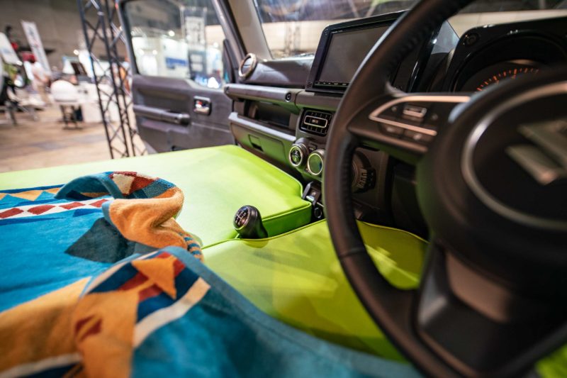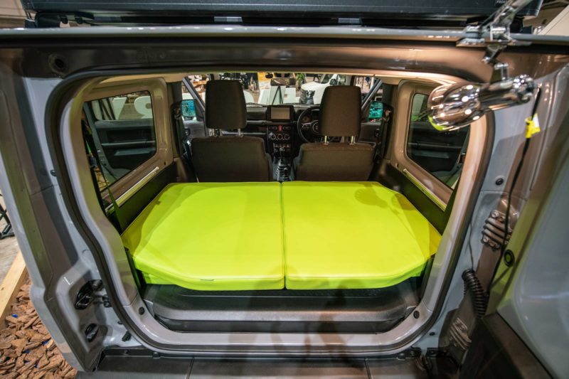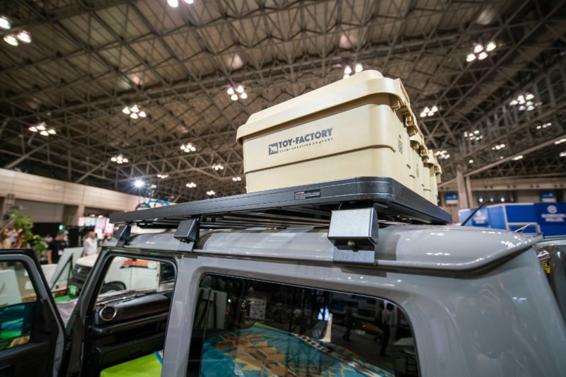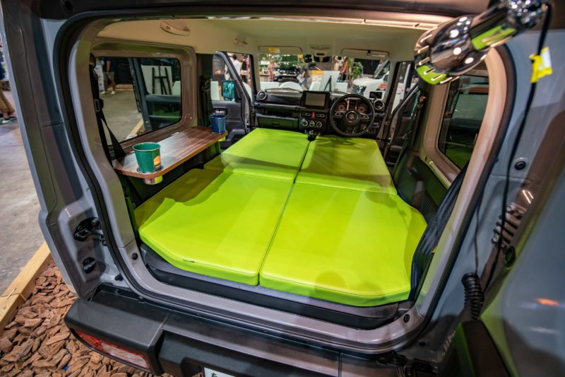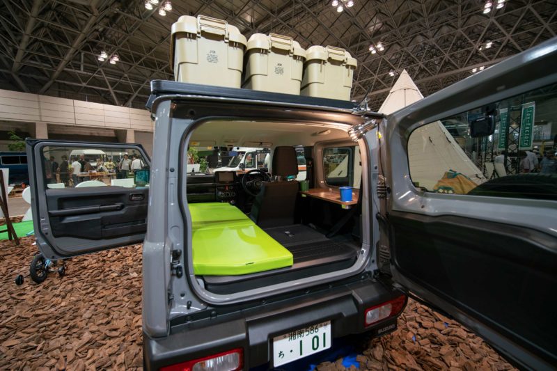 TOY-FACTORYさんブースの新型ジムニーTentCar。車中泊の枠を超えたテントのような軽キャンパー。