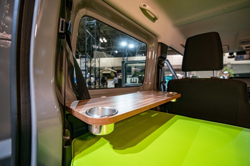 マットとは別にオプションとしてサイドテーブルキットが準備されています。ジムニーの中でご飯を食べたり小さなパソコンを載っけるくらいのことは出来そうですが、支柱がないので重いものを載せると結構グラグラします。ちょっとした小物を置いておくくらいなら大丈夫ですかね。
