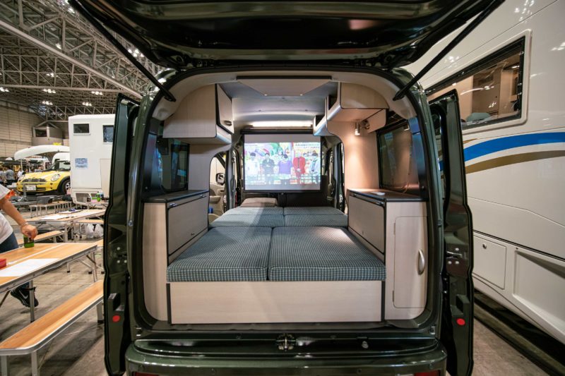 そういう視点で見た時、この会場で一番実用的と思えたのはこちらのスズキエブリィ。フルフラットが実に低重心で実現されており室内空間が最大限生かされているのが分かります。
