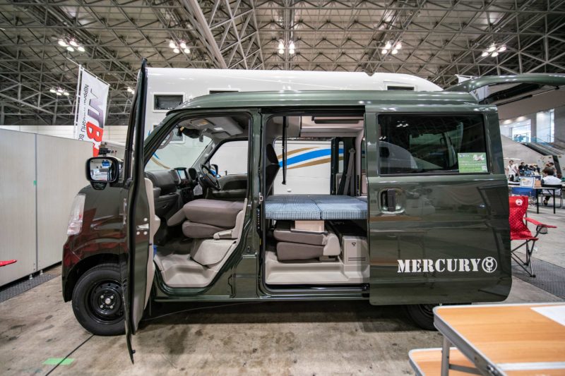 沢山のキャンピングカーが展示されている中で、私が注目したのは小型車両をベースとしたものばかり。バスやトラックベースのキャンピングカーはそりゃ良いのは分かりますが個人所有には限界があるというか、キャンプ専用車!になってしまいますからね、”キャンプ” ではなく ”車中泊” というワードの中にはどこか普段使用の願いも含んでいて、お買い物から旅行までこなせる事がポイント。
