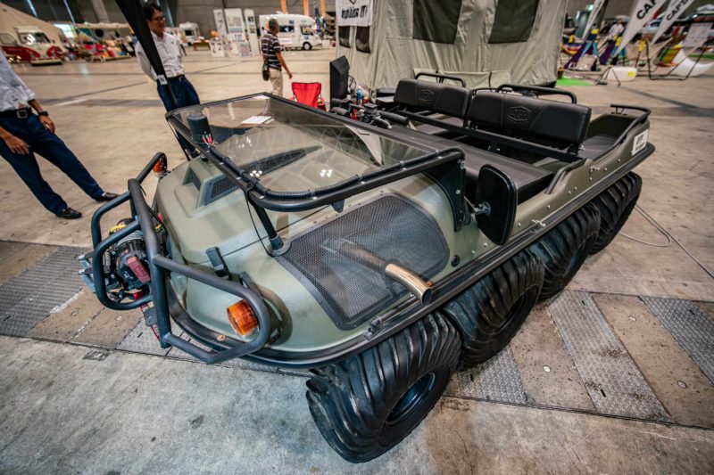 水陸両用を謳うこちらの8輪車。見るからにサバイバル感漂う佇まいはまさかの公道走行可。小型特殊車両に分類されるそうでギア好き男性が振り返ること間違いなし。