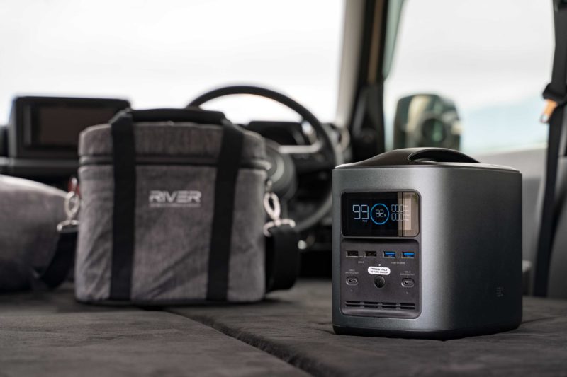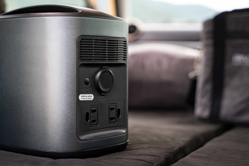 私が購入したポータブルバッテリーはECOFLOW RIVER 370なるモデル。決め手は何と言ってもUSB-Cポートが2系統搭載されている点。それもPD 60W対応ですからこのポートだけでMac Book Pro 15インチモデルが余裕で充電できます。2系統ですから同時にiPad Proも。