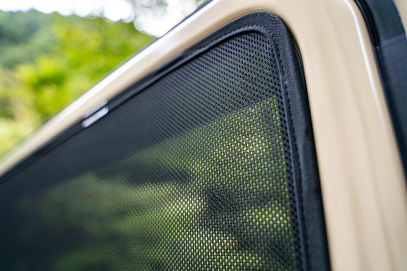 イマドキは車種ごとに専用設定があり各社からいくつかリリースされていますが、その多くが目隠しを前提としており通気性はあまり考えられていません。何を言いたいかというと、暑い日の夜に窓が開けられない!という事です。