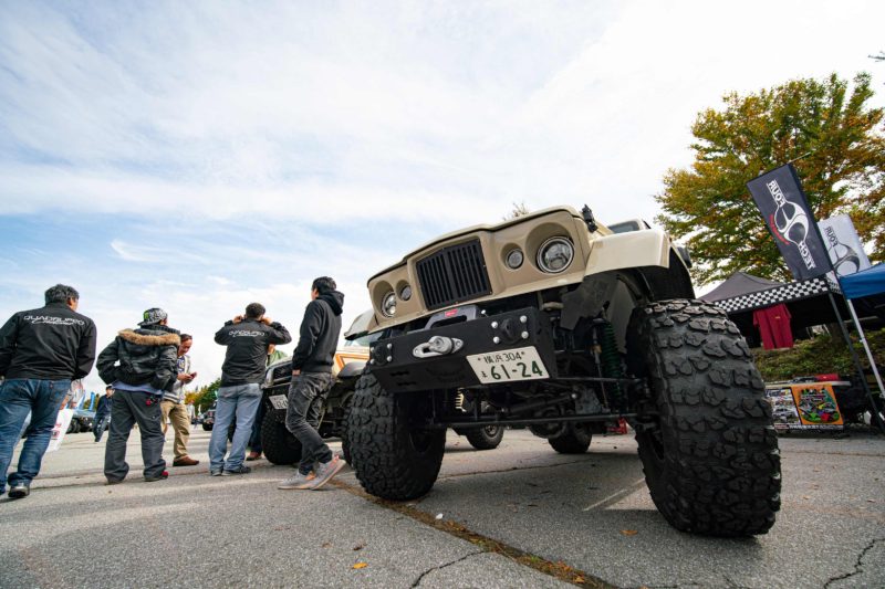 ちなみに横に並んでいたバケモノみたいな車、顔つきは特殊ですがラングラーでしょうかね。