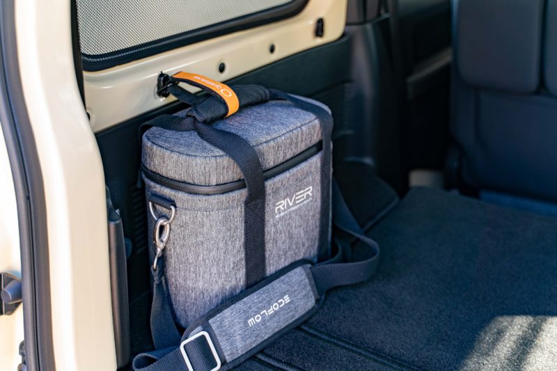 取り付けた一番の理由はこれ。ポータブルバッテリーって衝撃に対してシビアなわりに倒れやすい...。それなら走行中はここへ固定しておけば安心でしょう。