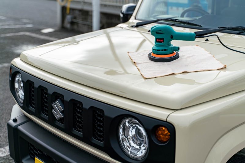 軽自動車とはいえジムニーがデカイ!と感じる私にとってワックスがけの苦労はちょっとこれまで所有した車の比ではなく。特にルーフは脚立の上に乗っての作業ですから磨きに力が入らない...。そんなに大変なら専門業者のボディーコーティングに出したら?と人には言われますがそれも違う。だって3ヶ月に1度くらいの頻度で磨きたくなりますからね、その都度業者に頼んでいたら一体いくらかかるのか?