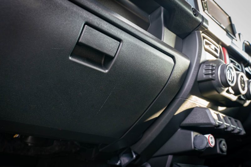 新型ジムニーを最初に見た時、エクステリアはともかくインテリアに関しては随分プラスチッキーだなぁと思いました。それはオーナーとなった今も変わらず。