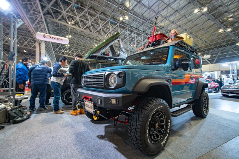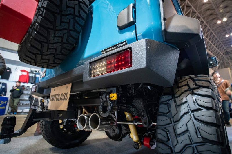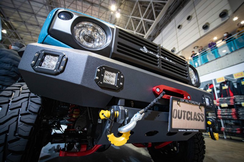 アウトクラスカーズさんはまず先に軽規格のジムニーJB64のカスタムカーを製作し昨年のオートサロンに出展、2年目となる昨年今度は普通車規格のジムニーシエラJB74のカスタムカーを製作し今回のオートサロンに展示。後出しのシエラを見るのは軽規格のJB64乗りには目の毒ですね。