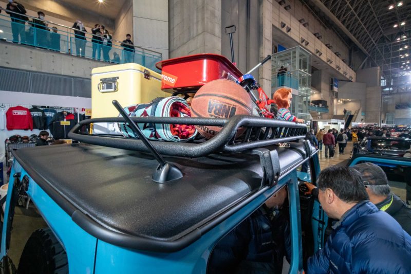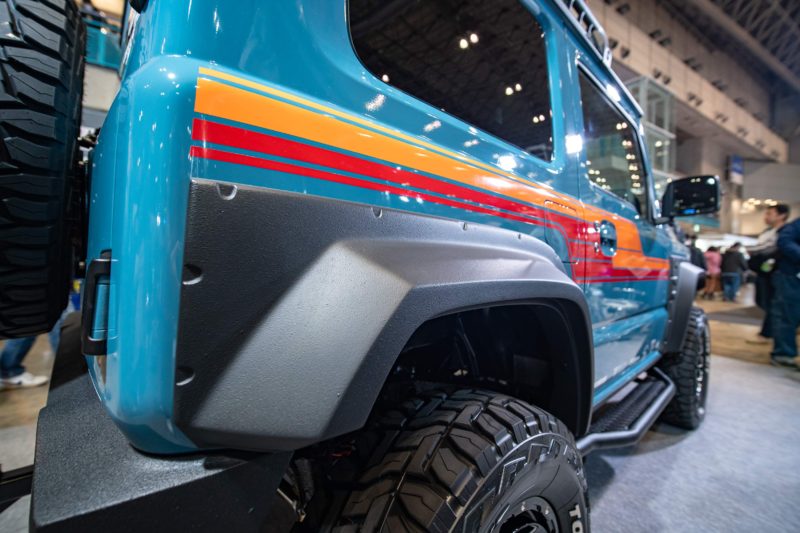 バンパーもウインチも最高にイケテル!もう文句のつけようがないデザイン。何か他の車を模して作ったのではなく、ジムニーの特徴を最大限引き出し延長した究極のジムニーシエラといった感じ。ここまで高い完成度を見せられるともはやスズキの立場が無い、そんな感じすらしてきます。スズキブースのデモカーとして展示されていても違和感はありません。