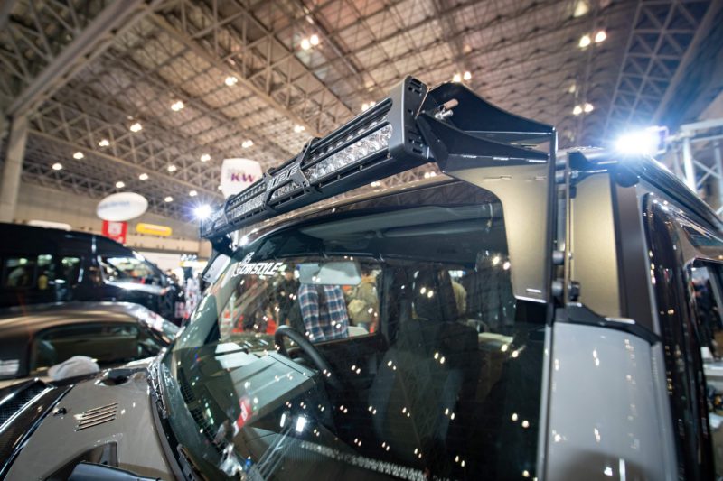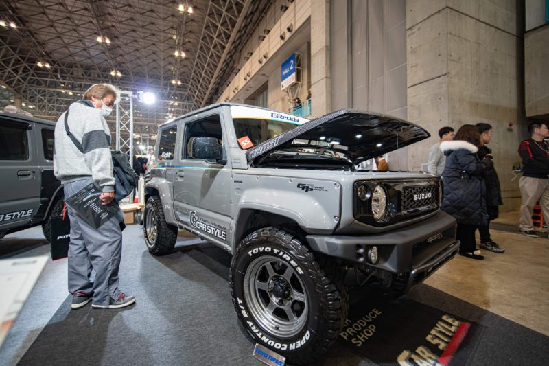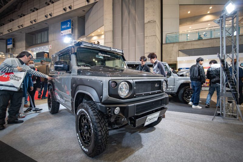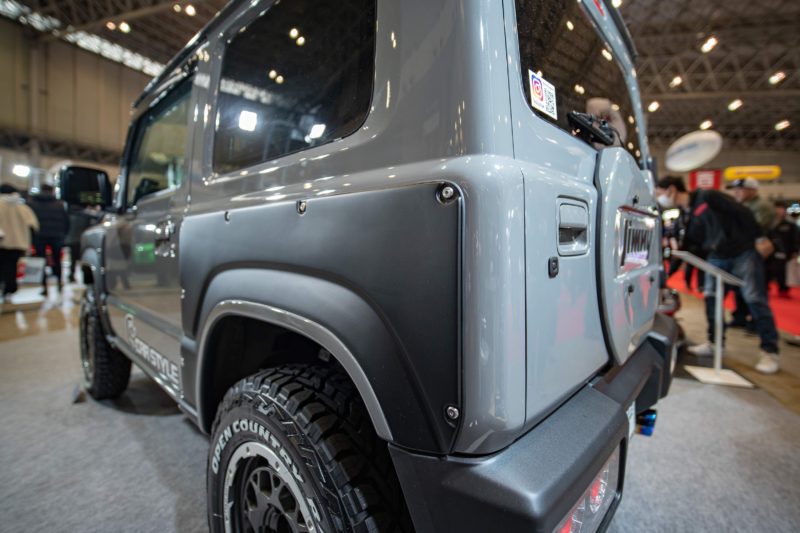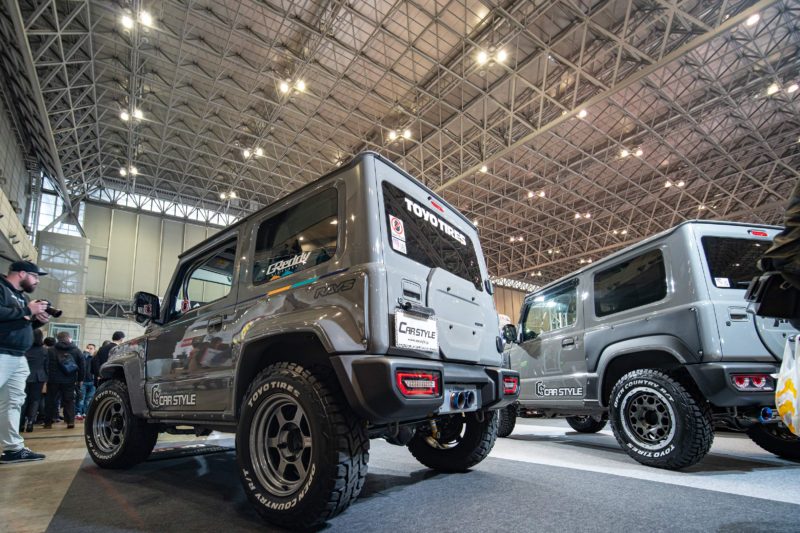 CarStyleさんのジムニー。JB64とJB74がそれぞれ展示されましたがこちらはJB64。質実剛健な印象はエクステリア全体から伝わってきますね。グレーのボディカラーがいっそうAmy感を引き立てます。
