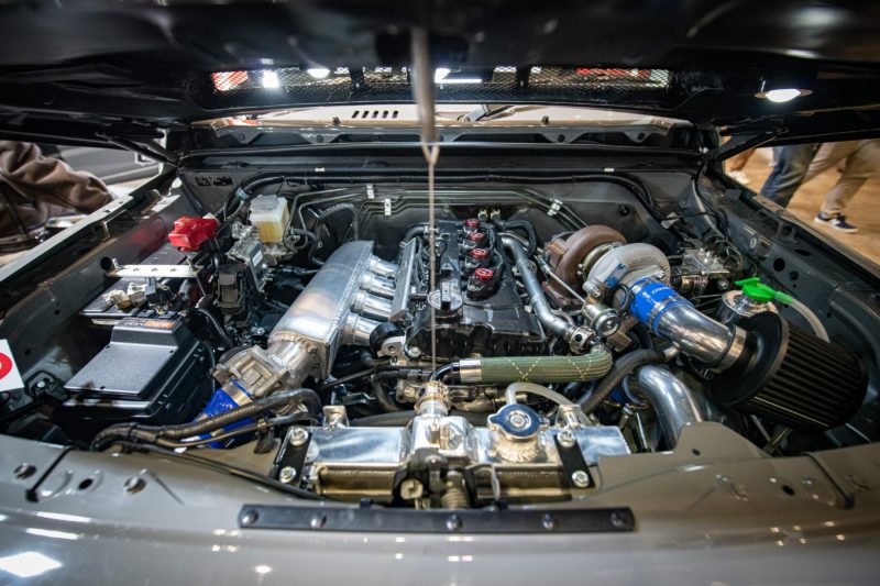 ノーマルシエラが1,500ccで105psですが、こちらのターボチューンのシエラは現在実測でその2倍を超えるパワーだそうで、目標は300psを狙っているそうです。ノーマル比3倍のパワーは流石にコンロッドやクランクが耐えられないような気がしたのですが、その点に関しても抜け目なく既にピストンとコンロッドは強化品で組み直しているそうです。駆動系の強化も必要でしょうが、本当にそんな数字が出せるのであれば最強ジムニーが完成することになりますね。