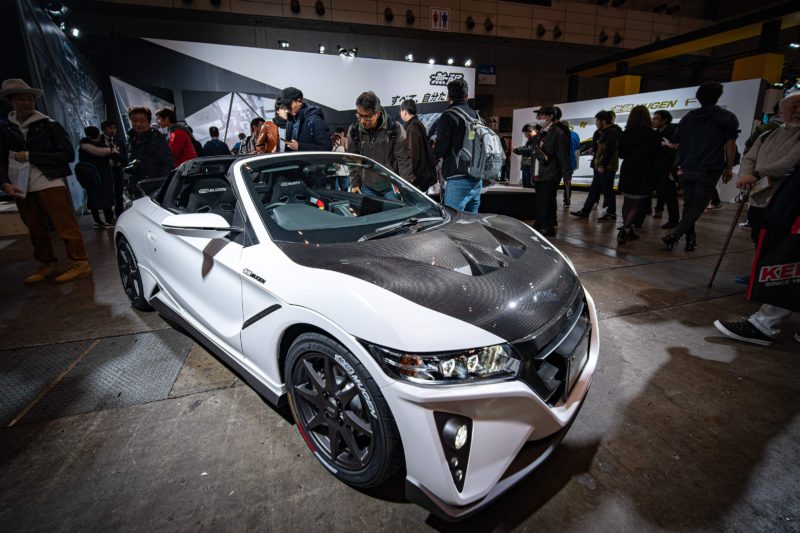 無限のS660コンセプトが展示されておりました。各種エアロパーツの他にチタン製マフラー、車高調整式サスペンション、15,16インチアルミホイールなどが装着されており、2020年夏発売予定だそうな。