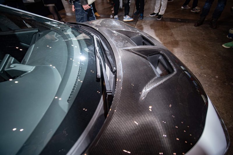 フルカーボンのエアロボンネット。おいくら万円するのでしょう? 実はこの展示車の後方にシビック用のエアロボンネットが展示されており価格も提示されていたのですが、お値段なんと110万円でした。ちなみにリアスポイラーが98万円。ボンネットとリアウィングだけでジムニーが買えてしまうという。こちらのS660用も同じ無限製ですから驚くような価格なのでしょう。当然、ウェットじゃなくドライですよね?