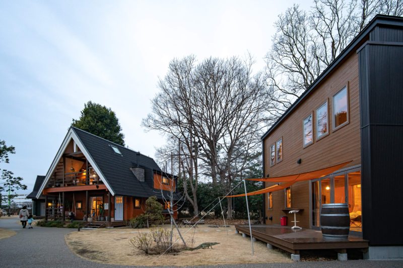 敷地内には何種類かのログハウスが建てられておりどれも個性的な魅力を放っておりました。夕暮れ時に訪れたため暖色の照明が雰囲気を盛り上げてくれて、ここだけが東京ではないような錯覚に陥ります。