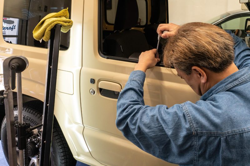この週末は愛車ジムニー修理も行っておりました。「修理って新車ぶつけたの?」って思われるかもしれませんが、ぶつけたのではなくどこかでドアを当てられたようでして...。