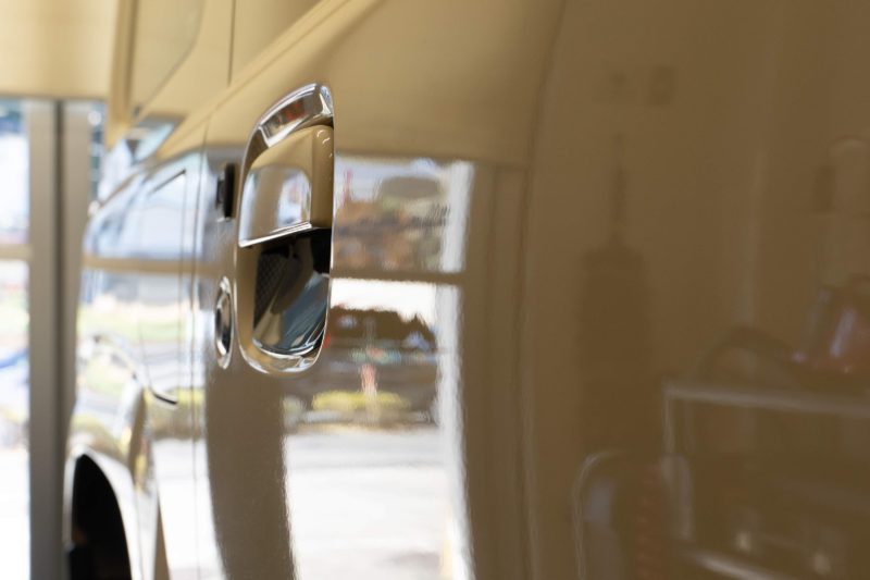 この完璧に修復されたパネル。凹んでいた箇所を知っている私でさえそれがどこだったのか見つけることができません。これぞ職人の技!こんなふうに綺麗に治るなら今後もドアパンチは怖くありませんね。塗装が剥がれてしまっていない限りかなりの確率で修復可能だそうです。雹の被害にあうとボディ全体で数十箇所がこのようにエクボだらけになるそうですがそれも見事に治せるのだとか!