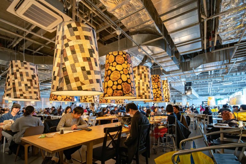 IKEAの中でご飯まで食べられるとは知りませんでした。勿論物凄い人でごった返していて目的のメニューを注文するのに15分くらい並びましたけれど、ドリンクバーなどもあって疲れた時には休憩場所としても使えます。このエリアの照明器具はなかなか他では見かけないようなデザインのものが採用されていて非日常感が楽しめます。