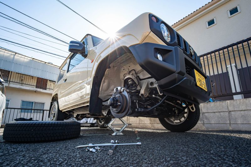 ミニクーパーに乗っていた頃はタイヤそのものが小さかったですからそれほど苦ではありませんでしたが、ジムニーのタイヤは普通乗用車よりも遥かに大きく重いですからね。車への積み下ろしだけでかなり重労働です。