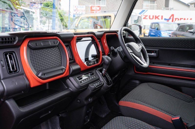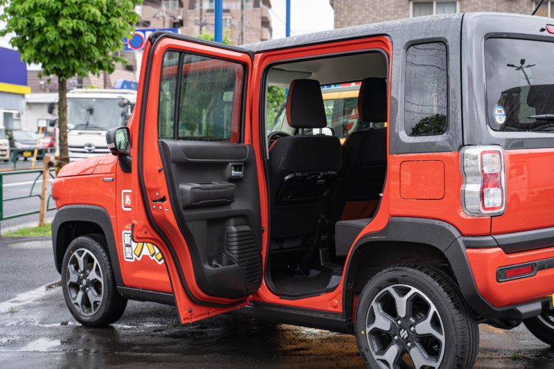 そしてこれは普通かと思いますがフロアの高さが低いので乗り降りがしやすそうです。ジムニーは最低地上高を確保するためフロアが高く乗降時は「よいしょっ」って感じですからね。ジムニーが好きで乗るドライバーは良いですが、助手席や後部座席に乗せてもらう人はちょっと乗りづらいと思います。