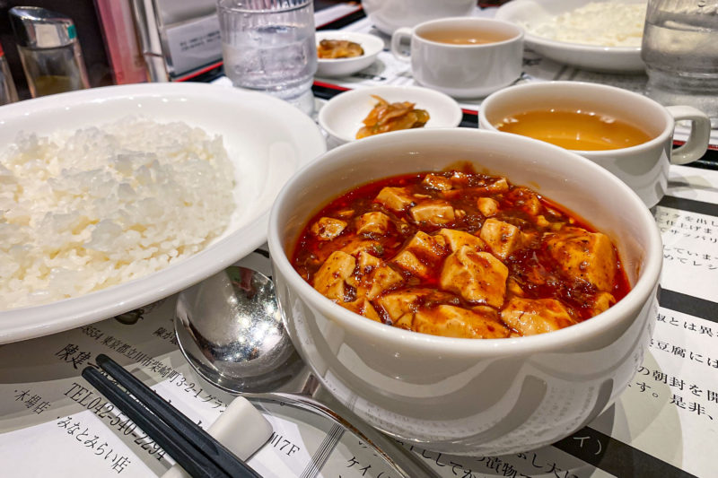 なぜかこちらは “陳麻婆豆腐” という店名ではなく ”陳建一麻婆豆腐”。微妙に店名が異なる理由は定かではありませんが、北京や新宿店には火鍋などのメニューがあるのに対し立川のこちらは麻婆豆腐のみの提供ですからその辺りの事情があるのかもしれません。
